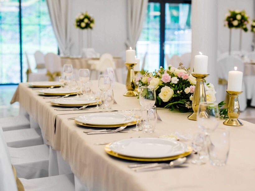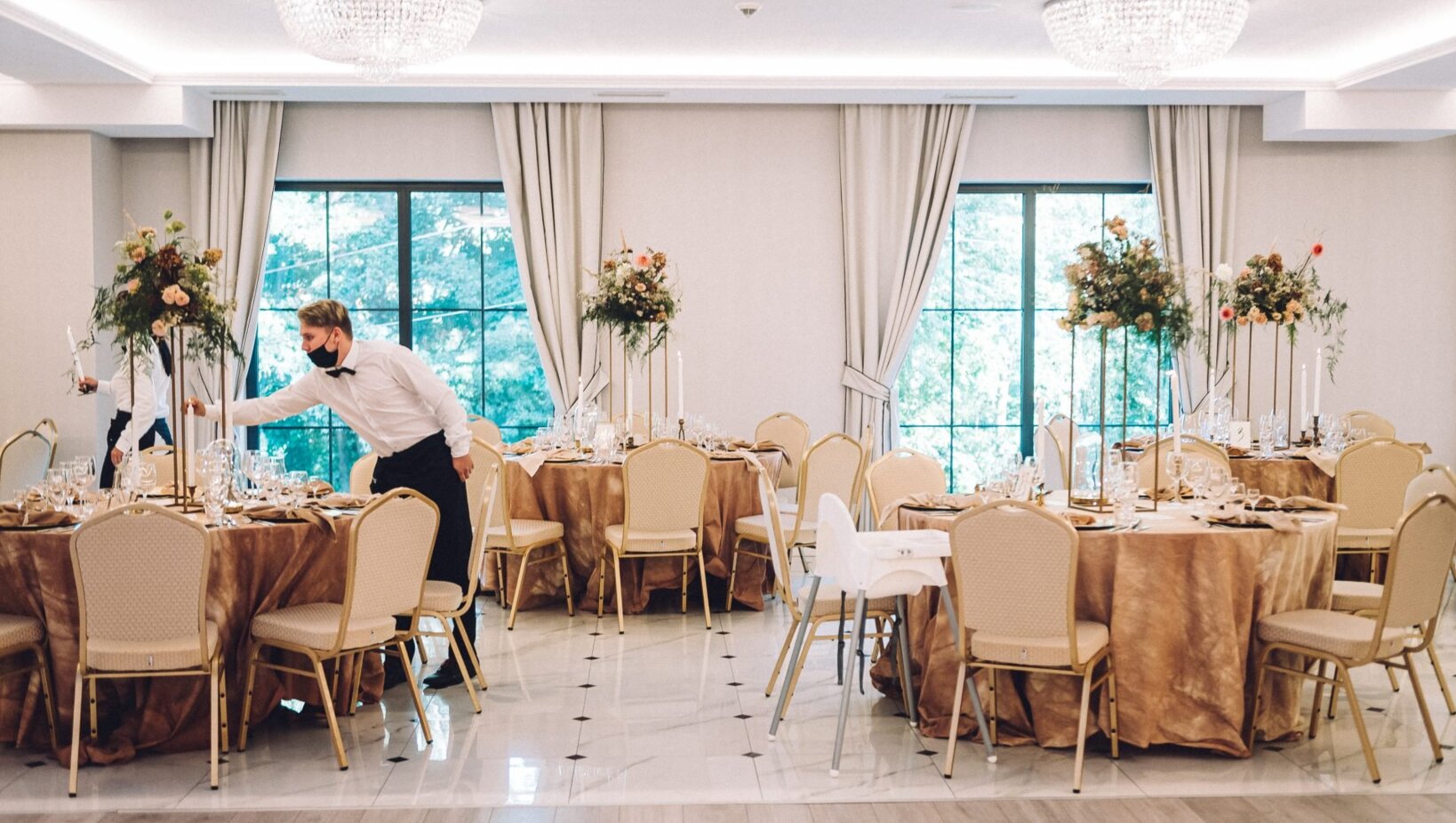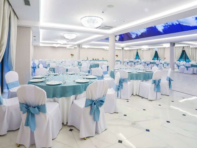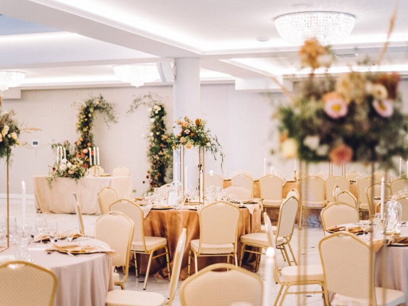 - Aranżację sali w układzie stołów okrągłych lub prostokątnych,